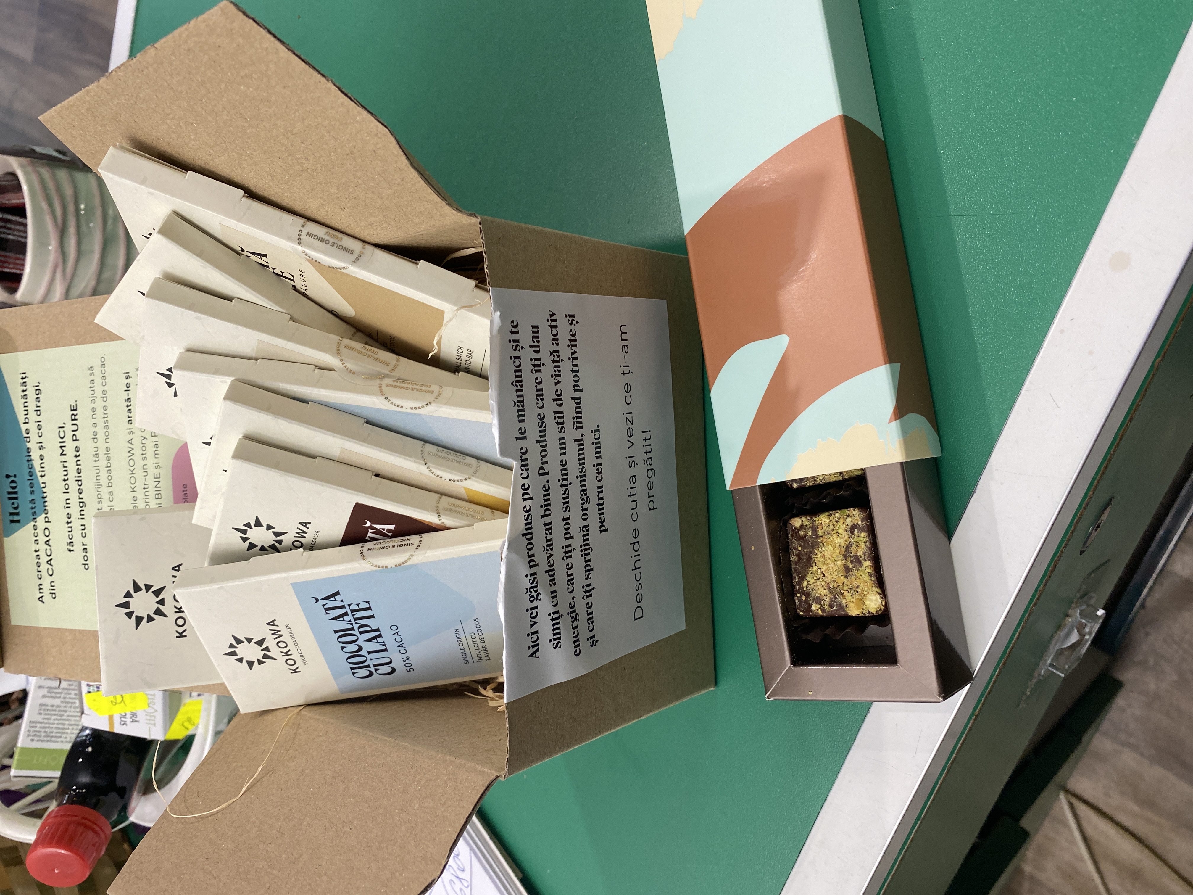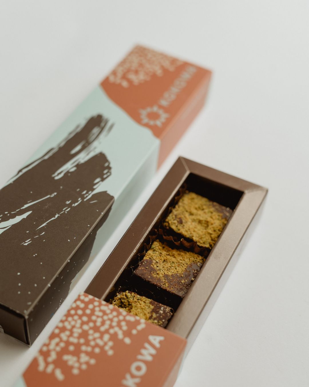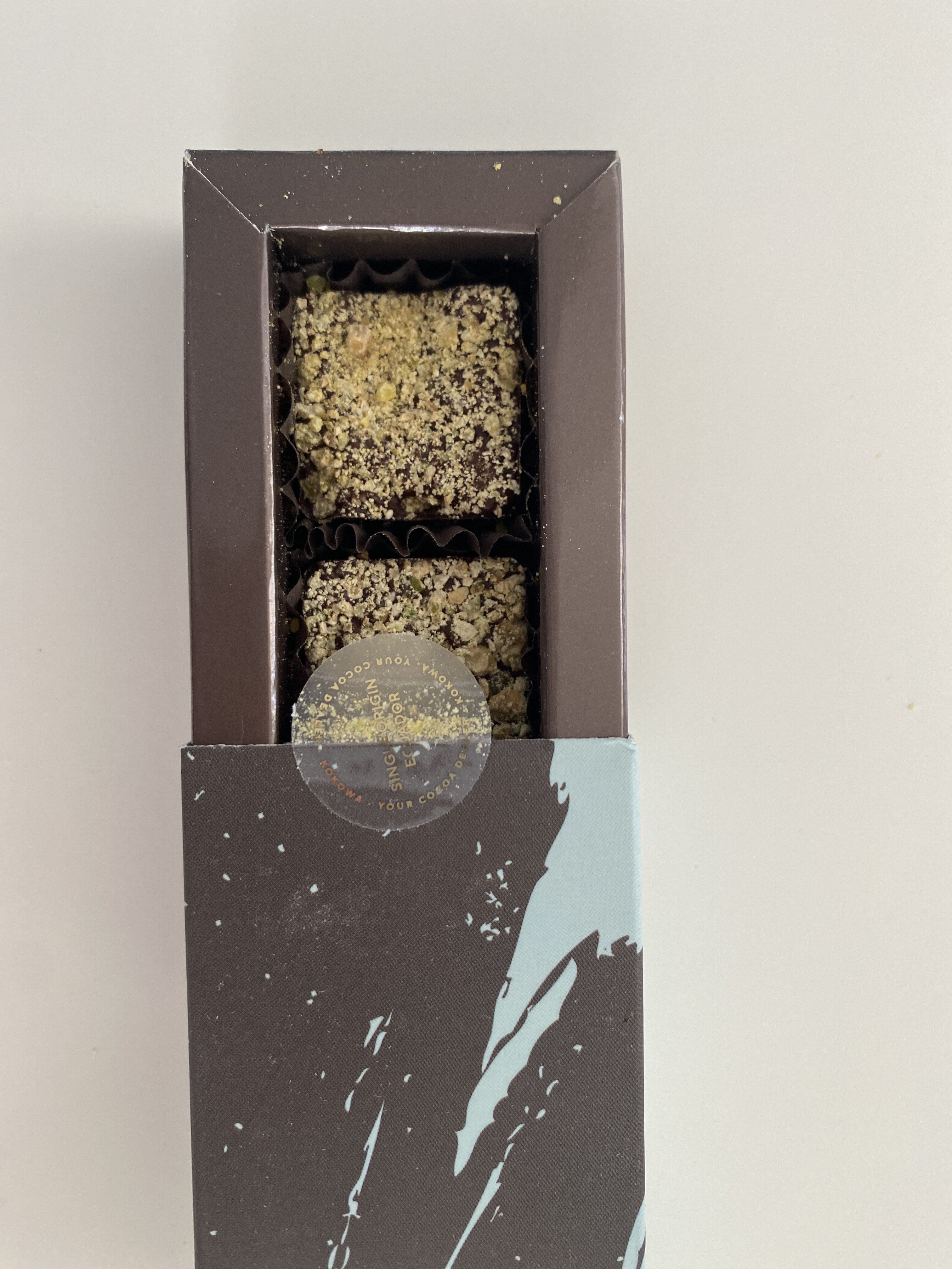 Cutia Fistic este o ediție foarte limitată KOKOWA, formată din 5 pătrățele de 9g fiecare.